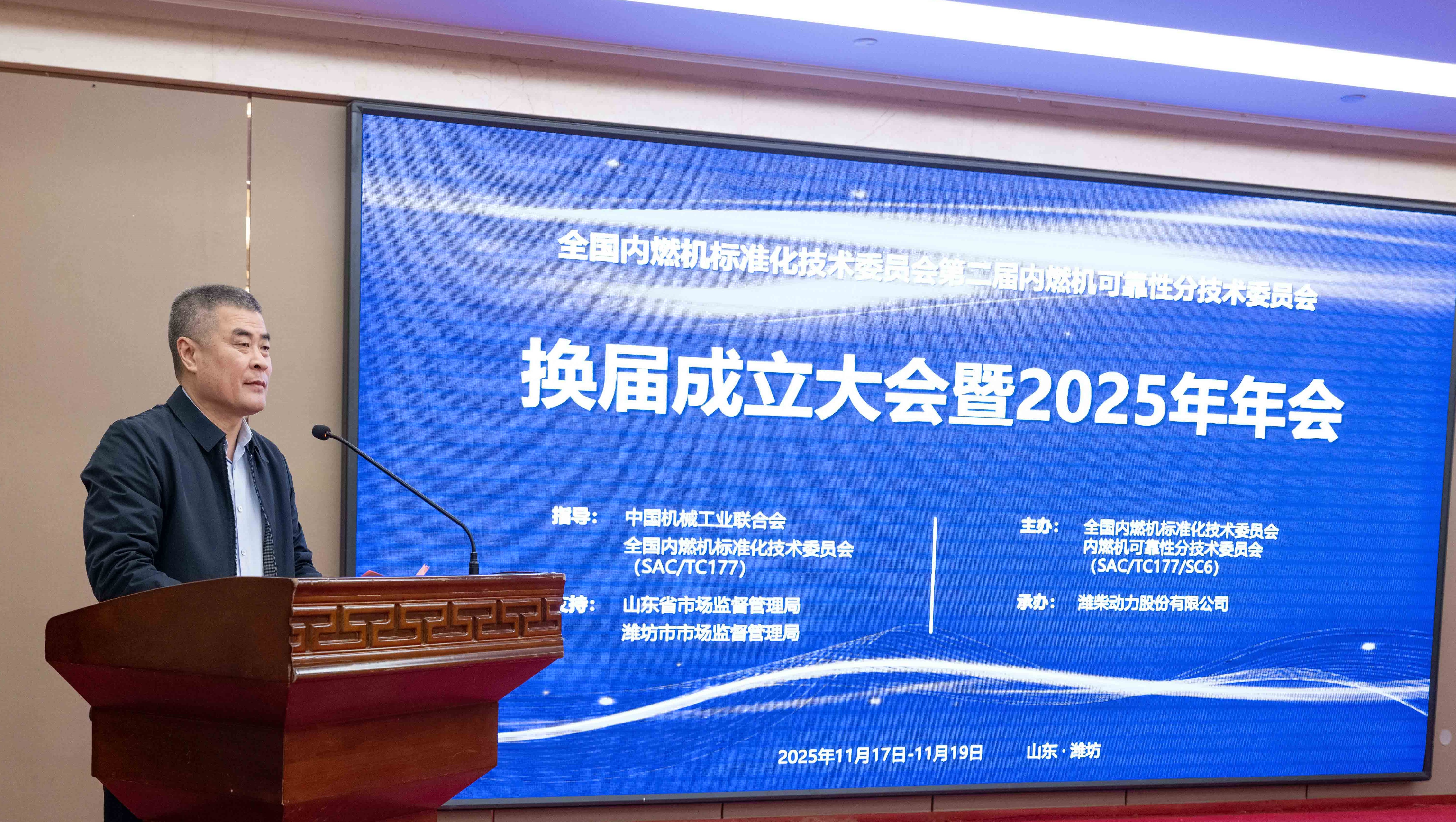全国内燃机标准化技术委员会第二届内燃机可靠性分技术委员会换届成立大会暨2025年年会于2025年11月17日至19日在山东省潍坊市圆满召开。会议由潍柴动力股份有限公司承办,来自上级主管部门、内燃机整机和零部件主要生产企业、检测机构、研究院所、用户代表、内燃机行业外资和合资企业等66名代表参加了会议。
